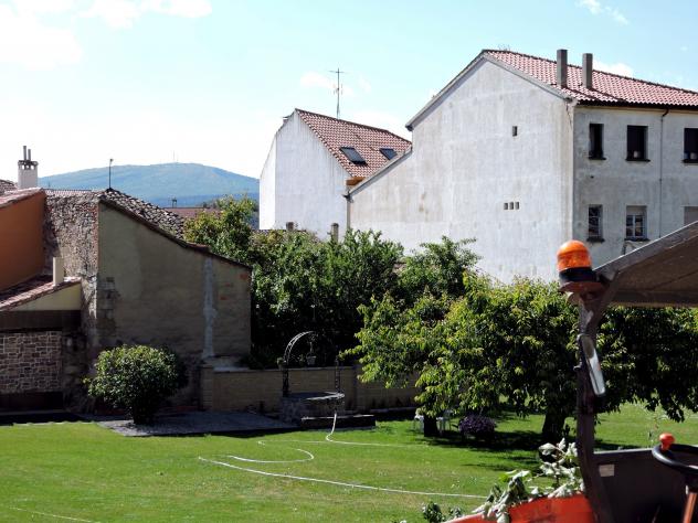 Un espacio verde con un precioso pozo,