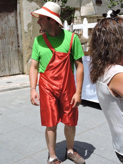 Hay un atasco y las carrozas están paradas. Se apea el granjero de la carroza anterior para saludar a los entusiastas de mi acera y yo puedo leer el nombre...
