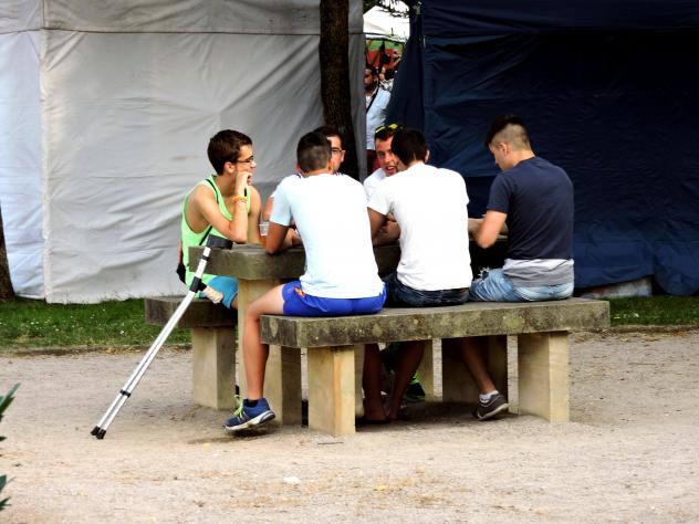 de hoy. Muchos vendedores ofreciendo sus mercancías aunque no sean alimentos... Pero estos muchachos aprovechando una mesa de