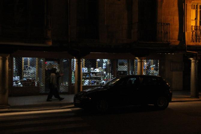 Cervera de noche. Ferretería Sordo,