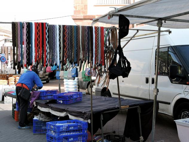 Colocando su mercancía. Cintos,