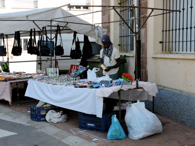 Un mujer africana vendiendo bisutería,