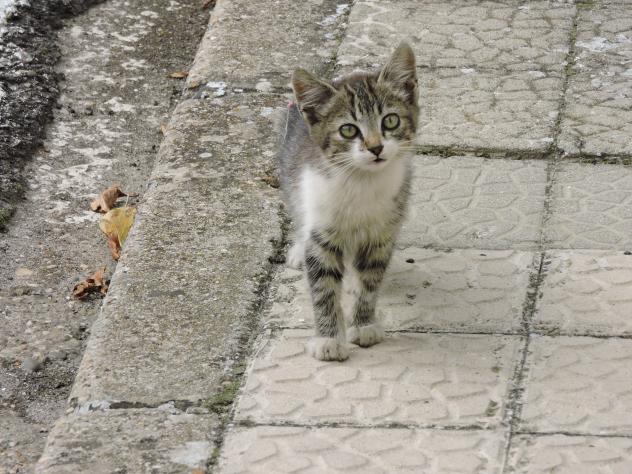 Gato pequeño y curioso,