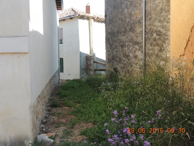 Un callejón sin urbanizar con malvas silvestres,