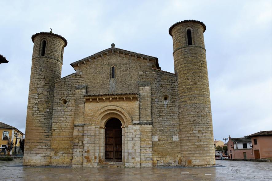 Fachada de poniente con dos torreones poco usuales en la iglesias románicas. Iglesia de San Martín,