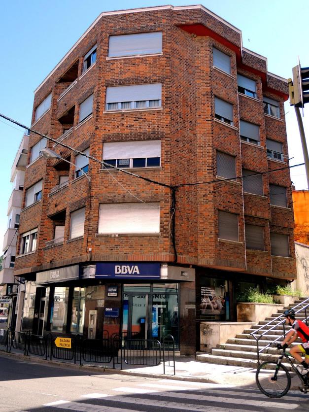 Edificio moderno de ladrillo bicolor,