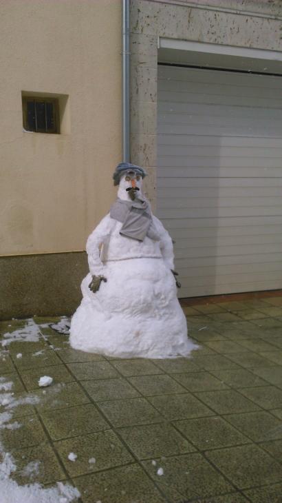 No Nati, no es mío el muñeco, no voy a atribuirme algo que no he hecho, éste estaba enfrente del bar Pisuerga, pasé por allí y le saqué la foto, es lo único que he hecho yo. Un saludo. Oti todas las fotos preciosas, y como no iba a faltar con tanta nieve como a caído, el famoso muñeco de nieve, te a quedado muy bonito, los que habremos hecho mis hermanos y yo en el patio que tiempos madre....