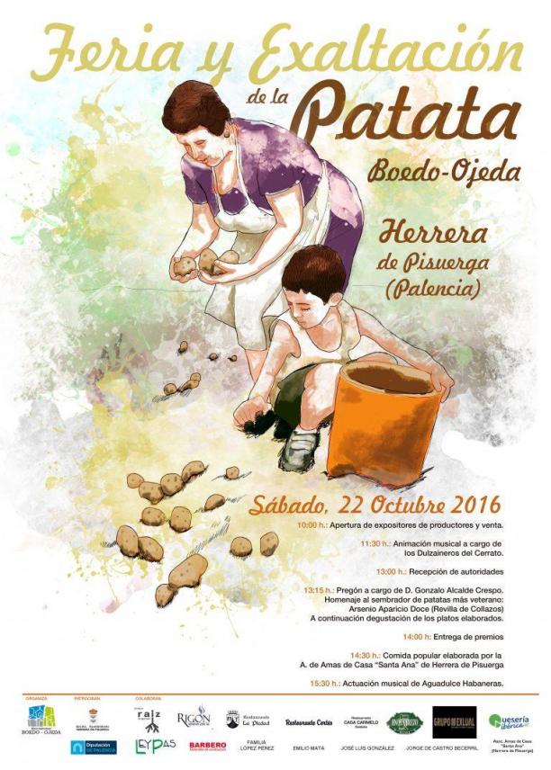 En los años 70, poco después de venir a vivir a Segovia, en uno de los mercados de calle, un vendedor de un pueblo cercano a Segovia, Garcillán, me dijo: estas patatas son muy buenas, pues vamos a comprarlas para la siembra a la zona de la Ojeda. Os podéis imaginar mi alegría; se las seguí comprando hasta que se jubiló. Gracias Lalin por poner este bonito cartel y tenernos informados de la fiesta de la patata a todos los herrerenses ausentes. Espero que os haga buen tiempo y podáis pasar un bonito día. La comida es gratis para todos los que asistan, es un plato de guiso de patatas con pan t vino, también se pueden degustar tortillas y platos preparados con patatas que participan en el concurso, es una fiesta muy bonita y participa mi ha gente, no dejes de asistir, lo pasaras bien, espero haberte sido de ayuda. Un saludo He oído hablar mucho de la fiesta de la patata en Herrera de Pisuerga pero nunca estuve en ella, por lo tanto desconozco todo de como se celebra, en su programa, se anuncia una comida popular sin mas, pregunto, ¿esta comida es gratis?, ¿quienes pueden participar y de que forma?, "me interesan estos detalles ya que tengo la intención de asistir", qiero ir informado y prevenido. Gracias. Bonita fiesta esta de la patata a la que acude mucha gente de la comarca y lugares de las provincias limitrofes.