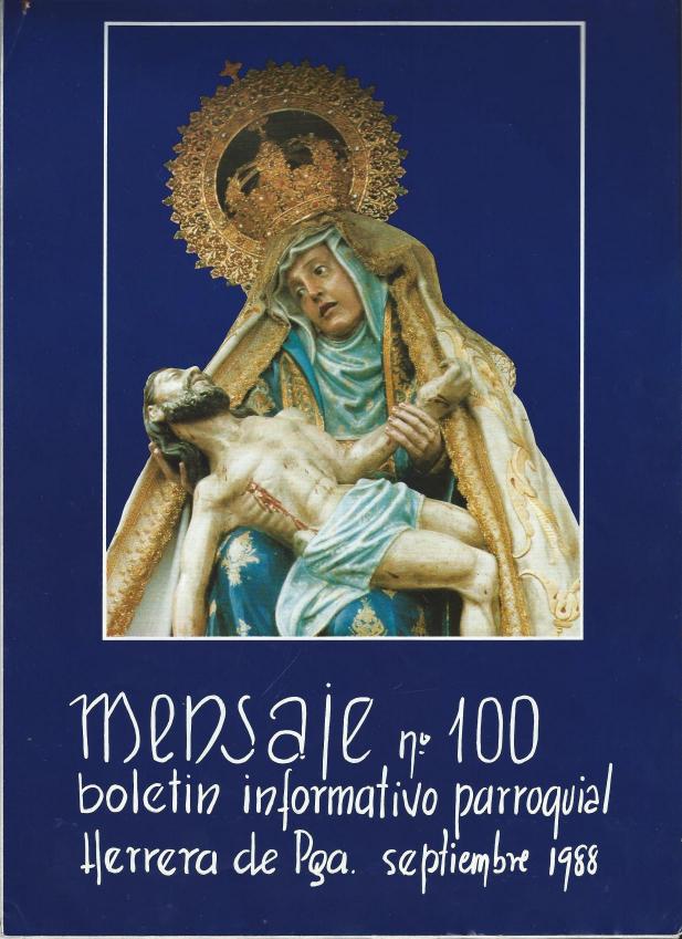Muchas gracias, Don Miguel Ángel, por su buen servicio a los herrerenses. Justo acaba de aparecer la foto de la portada del número 100 del boletín parroquial. Este es un ejemplar de esos boletines parroquiales que circularon cuando era párroco don Miguel A. y que el forero emilio ha recopilado en CD. Más adelante subiré por lo menos un par de páginas para que veáis el tipo de contenido de tales boletines. Me gustaría preguntar a emilio si la biblioteca municipal dispone de copia del CD porque pienso que quizás habrá gente interesada en dar un vistazo a la cantidad de información sobre Herrera que estos boletines guardan. Estos boletines también dedicaban...