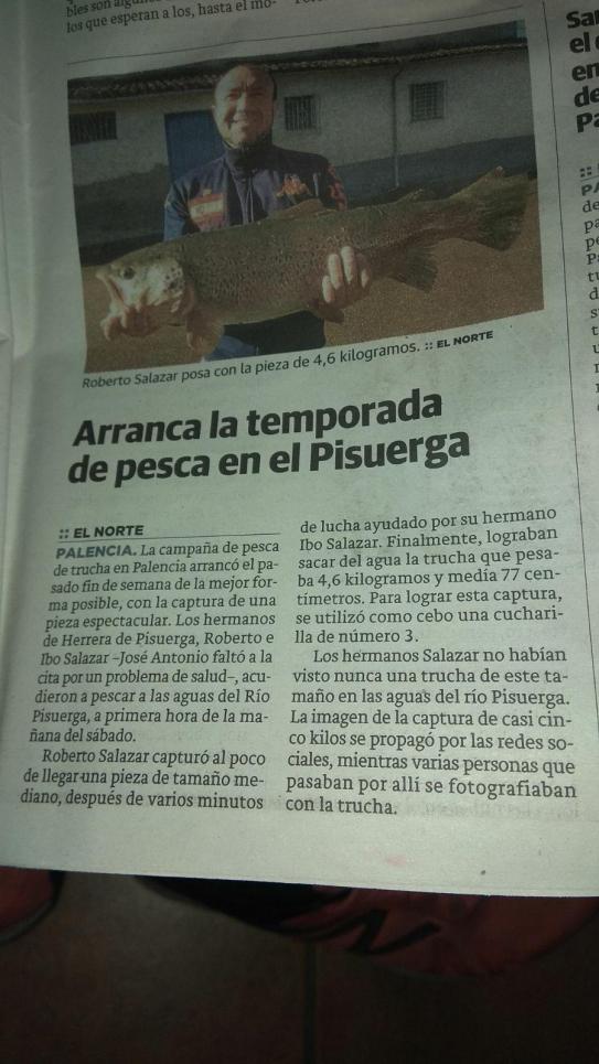 Pisuerga esta enorme trucha. A buen seguro sera la envidia de muchos