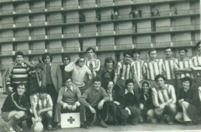 Arriba de izquierda a derecha: 1 Juan Carlos Arroyo, 2. Miguel Angel Gómez, 3 Miguel Sampedro, 4. José María Pardo (Cheli), 5 Gena, 6 Dimas, 7 Adolfo Fdez., 9 José Luis Gómez (Pilín), 10 Agustin Fdez., 11 Toño (Villabermudo).