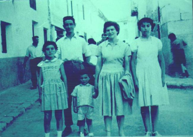 Se veía muy transitada la calle Real este día de verano en la que aparecen mis padres, mi hermana Marisa y yo oon una joven vecina, Maria Jesús de Miguel. A la derecha se puede observar a un chiguito jugando al escondite.