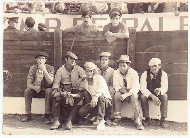 Como podreis comprobar, estos son los componentes de una de tantas cuadrillas que se formaban para pasar una tarde agradable toreando a unas becerras. Casi seguro que conoceis a todos. Un saludo.