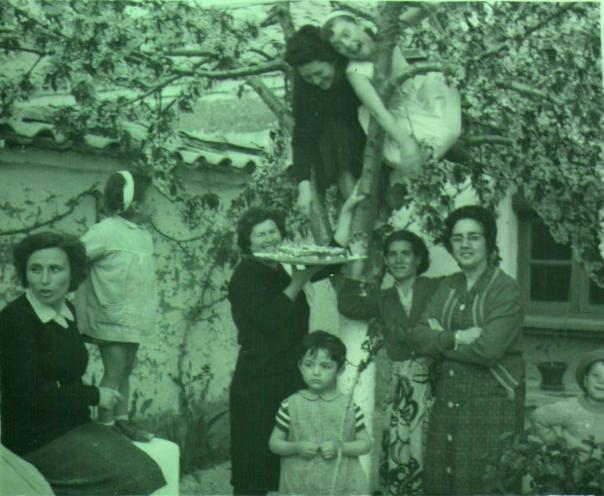 Esta foto se la dedico especialmente a Talega. Es muy parecida a la que ella envió pero se celebra un cumpleaños diferente y cambian un poco las personas retratadas. Está hecha en el patio de la casa de mi madre Luisa Dulcet (con la tarta). También podemos ver a Goyita haciendo gala de su buen humor subida al cerezo junto a Piedacita González, debajo la madre de ésta Daniela Mediavilla, a su lado Carmen y saliendo de cuadro mi hermano Maca. A la izquierda Carmen Herrero y su hija María Elena y en el centro Elena Maestro.