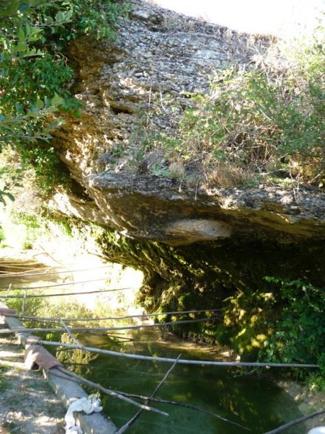 Como se puede observar en la imagen, alguien ha transformado la cueva en un pilón para recoger el agua que brota de sus paredes y regar una pequeña huerta que ha montado. Cemento y ladrillos que, a mí parecer, han destrozado el paraje.