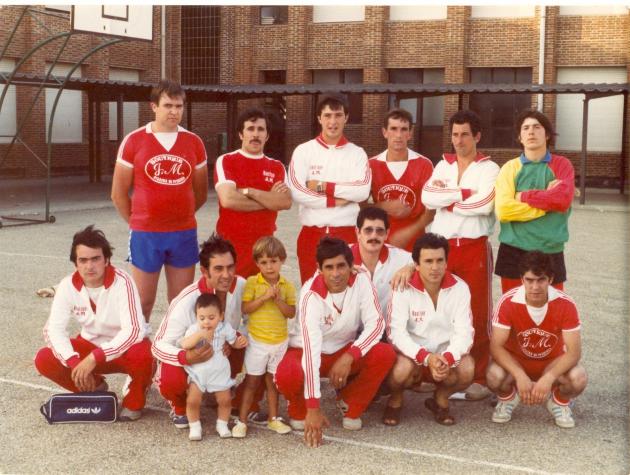Agachados: Carmelo Blázquez, niño y Jaime (padre del niño), Manel García, Mariano García, Teodoro Pérez, Julián Cuesta y Julio varona.
