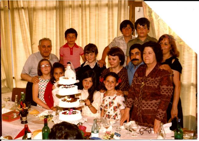, mi hermana Idoia, la hermana de Jesusin no recuerdo su nombre, mi primo Julen y yo, la madrina de mi hermana, Toñi y su marido Tikio mi madre y mi abuela y a la izda del todo mi abuelo