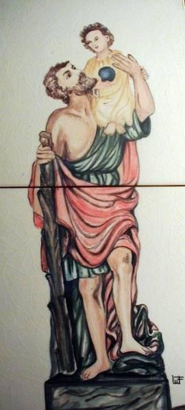 San Cristóbal, popularísimo gigantón que antaño podía verse con su barba y su cayado en todas las puertas de las ciudades: era creencia común que bastaba mirar su imagen para que el viajero se viese libre de todo peligro durante aquel día. Hoy que se suele viajar en coche, los automovilistas piadosos llevan una medalla de san Cristóbal junto al volante.