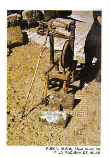 Rueca, Husos, Escardadera y maquina de Hilar,