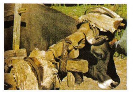 Carro de vacas recogiendo la hierba,