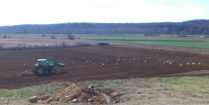 Hoy tambien estaban, habia unas 30, parecian un rebaño detras del tractor daba gusto verlas Bonita imagen de cigüeñas!