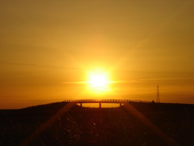 Hermosa puesta de sol sobre el puente autovía,