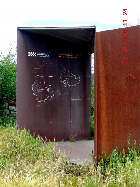 Paneles metálicos con la información del románico,