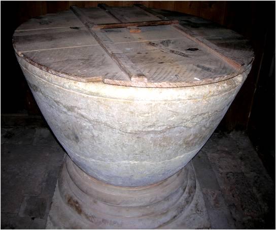 Pila bautismal en la iglesia de Micieces,