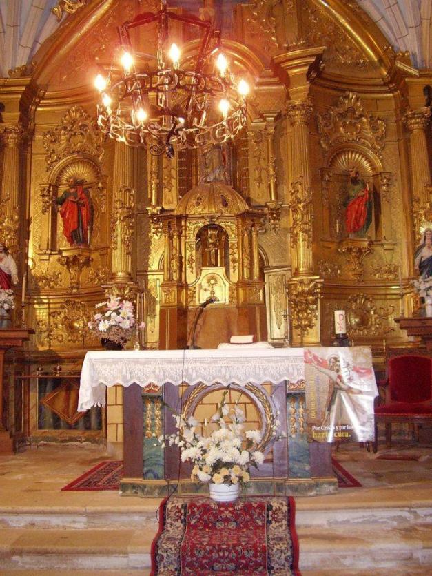 Altar mayor de la iglesia del pueblo. En el centro del altar San Martín patrono del pueblo. Santo francés oriundo de la ciudad de Tours. La leyenda cuenta que siendo guardia del imperio romano se encontró un día con un mendigo medio desnudo tiritando de frío y le dio la mitad de su capa pues la otra mitad pertenecía al ejército romano a quien servía. A la mañana siguiente Jesús se le apareció vestido con su media capa para agradecerle el gesto que había tenido con aquel mendigo. Martín deja el ejército, se convierte al cristianismo y en el año 320 es nombrado obispo de Tours. Su festividad es el 11 de noviembre y como coincide con la época de la matanza del cerdo de ahí el origen de la expresión "a cada cerdo le llega su San Martín".