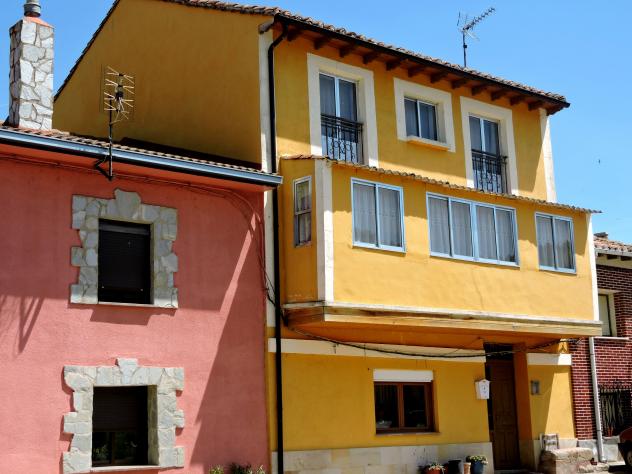 Casa reformada con un mirador y pintura amarilla,