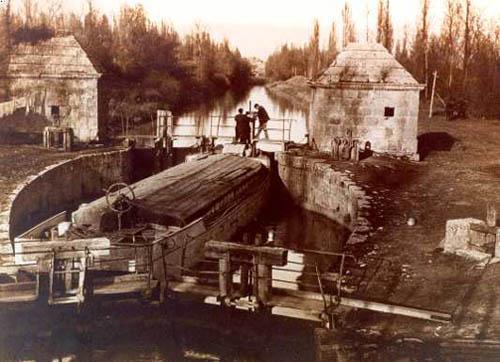 Hola Gonzalo, me agrada mucho ver fotos del canal, mi familia por parte de mi padre estan relacionados con el canal. Mi abuelo Emeterio fué el ultimo barquero que trabajo en la retencion de San andres (el barco en la presa del rey de herrera). Esta foto pertenece a la esclusa de retencion de Ribas de Campos en el cruce del cnal con el rio Carrión. Allí tambien trabajo mi abuelo Emeterio y alli nació mi padre. Gracias por colgar esta foto. un saludo Miro.