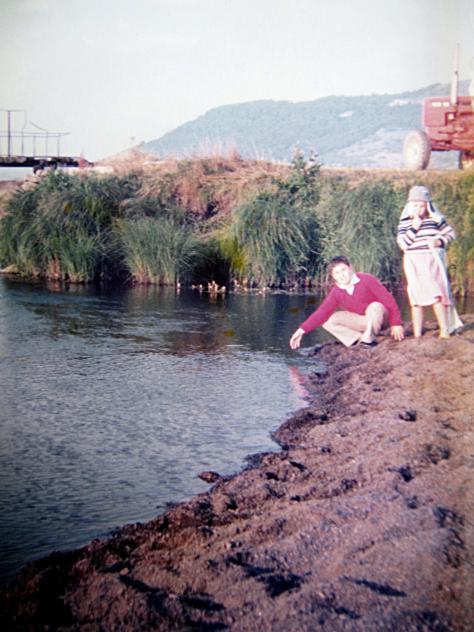 estamos mi hermana Mª Asun y yo. Sale el tractor de Maxi usado de bomba para regar las patatas.