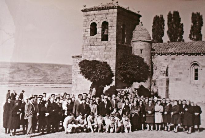 Hola Ana: Hace unos días, comentaba que esta foto, de la despedida de D. Alfredo, es una variante de otra que hay. En esta se ve una cara, detrás de tu madre y delante del Sr. Eusebio, que en la otra, foto, no se ve y nos preguntábamos, quién podría ser? Creo que tú me lo has dejado bastante claro cuando, en un mensaje anterior, aclaras que la que está en brazos de tu madre es tu hermana, Elena, y que tú estás al lado de tu madre. Digo que ahora lo tengo claro, porque creo que la cara que ve es la...