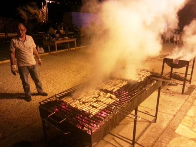 En primera plana las parrillas y al fondo el asador oficial de