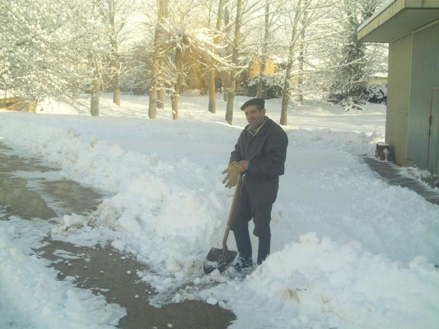 Carlos limpiando la nieve,