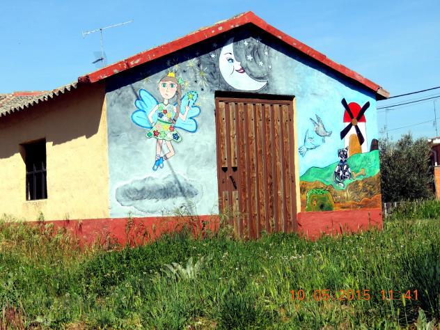 La caseta decorada con dibujos infantiles,