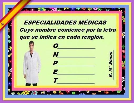 Entre las muchas especialidades médicas que hay, encuentra alguna que comience por la letra según indica el ejercicio.