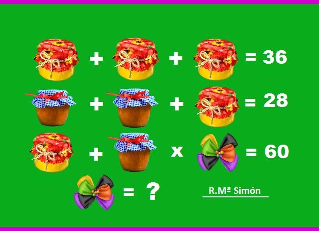 Lazo o X es igual a 3; Tarro azul 8 y tarro rojo 12