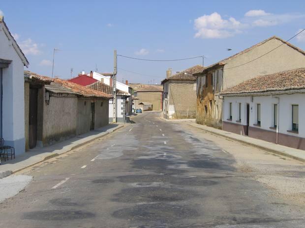 Entrada al pueblo por la Calle Mayor viniendo de Saldaña.La calle presenta un ligero cambio desde hace poco tiempo, la segunda casa de la derecha fué demolida por encontrarse en situación de ruina. (11 de Diciembre de 2004).