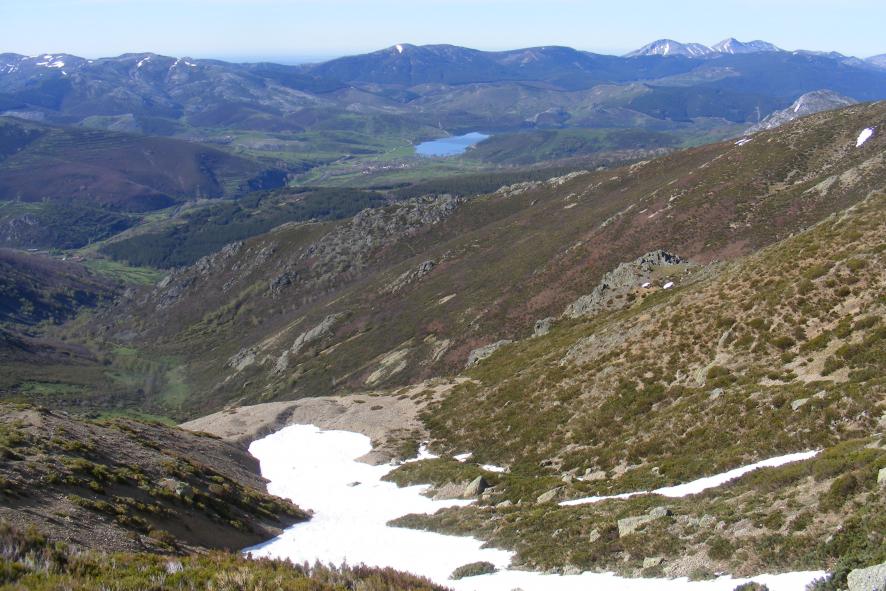 Se ve el pueblo desde las pendientes del Curavacas,