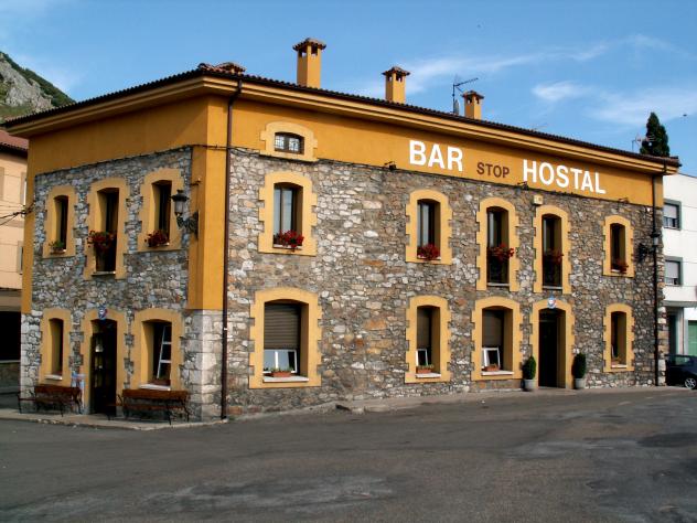 La entrada al casco urbano. Bar Hostal,