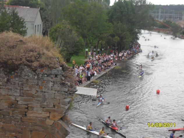 los palistas avanzan por el río,
