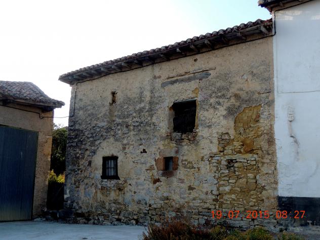 Pared con piedra y adobe desconchado,