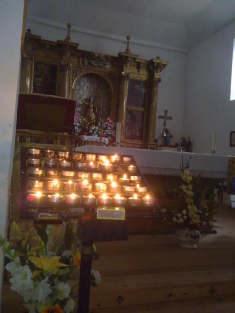 Lamparillas, con retablo al fondo,