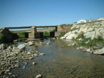 El Cueza con mucho caudal, pasando por debajo del