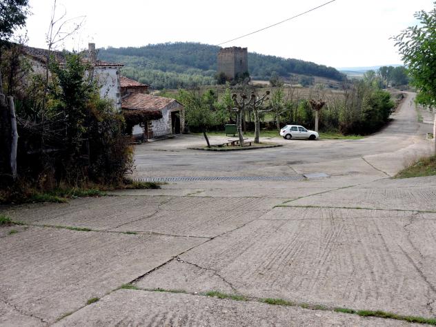 La plazoleta del pueblo con la carretera en medio,