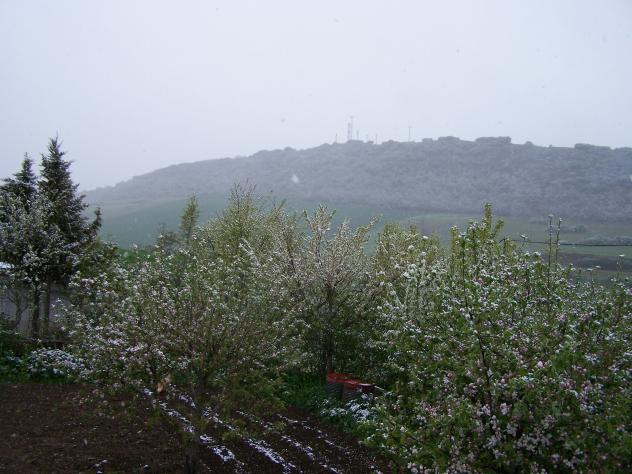 saludos y salud.................... luego más. Y me dejan sin luz hoy por la mañana, han avisado de 9'30 a 12 de la mañana, será por el cambio del contador supongo, que ni preguntan ni les interesa lo que opines, a mi personalmente no me hace ninguna gracia, un amigo me iba a mandar unos documentos para intentar que no me cambiaran el contador... ¡juventud divino tesoro! y memoria deplorable, bueno yo también he estado un poco liada y esto no tiene más arreglo que bajar la cabeza a l0 que ya estamos acostumbrados, luego llegarán las noticias... Esta foto del 4 de mayo de 2010, da una idea de como se porta aquí la primavera, cada año pensamos que como este año de raro ninguno, luego te pones a recordar y resulta que no hay ni una primavera buena, ¡en fin! que pase rápido y pronto. un saludo. 2º y lluvia que en este momento es nieve, esta mañana ya hemos empezado a ver nevar, por unos momentos se ve perfectamente que son copos de nieve y al minuto se convierte en agua-nieve, ese es el día del que disponemos y cuando no hay más, lo mejor es utilizar lo que está a nuestro alcance, un saludo. Catalina