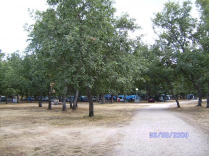 Zona de acampada bajo los robles,
