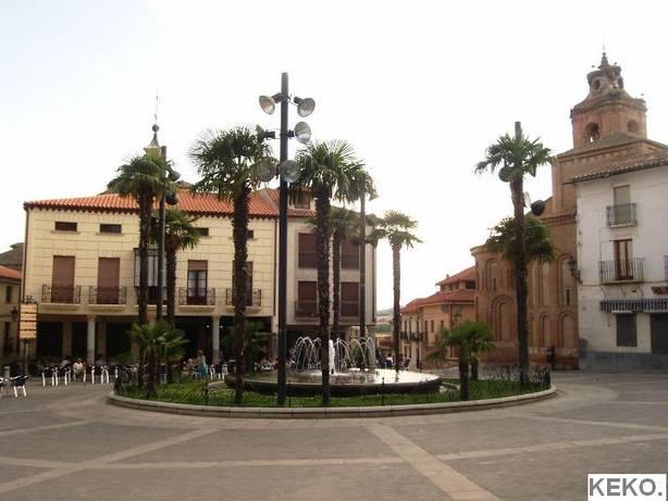 Fuente con palmeras en el centro,