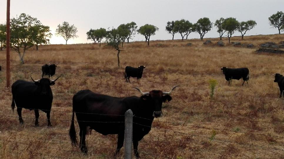 Ejemplares de raza morucha en una explotación al aire libre como corresponde a esta raza autóctona adaptada a los rigores del clima de la provincia salmantina, siendo una de las razas que contribuye a la variedad de bóvidos que se crían en los campos y dehesas de la provincia, que en conjunto supone la mayor cabaña de ganadovacuno de España con más de 500.000 ejemplares.